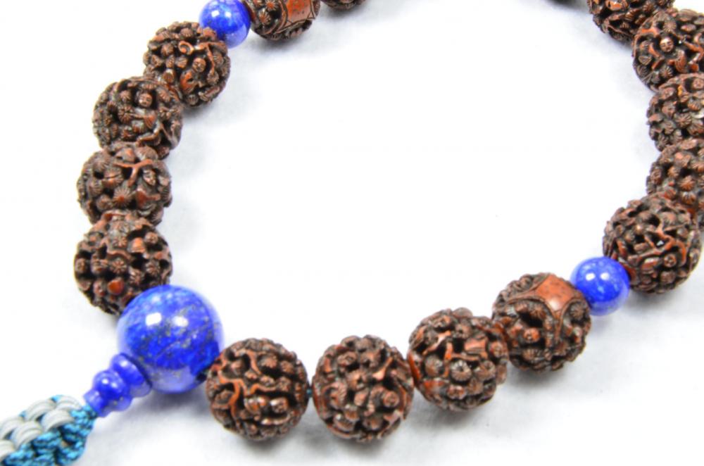 印度虎眼菩提樹 羅漢彫18玉ラピス仕立て