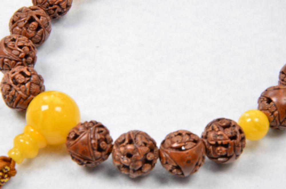 印度龍眼菩提樹 羅漢彫20玉乳琥珀仕立て