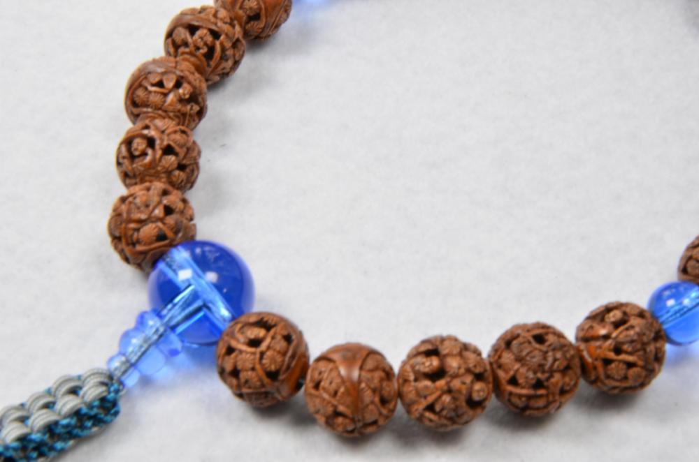 印度龍眼菩提樹 羅漢彫22玉ブルークォーツ仕立て