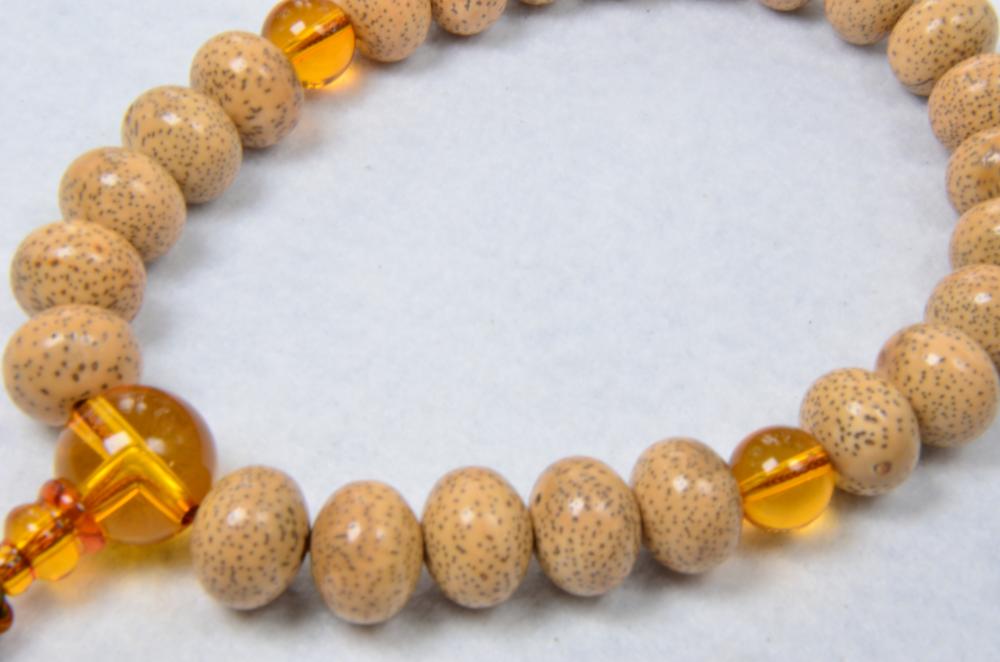 貴重な海南島星月菩提樹です。天然の琥珀で仕立てました。長く持つにつれ艶がでてきます。
