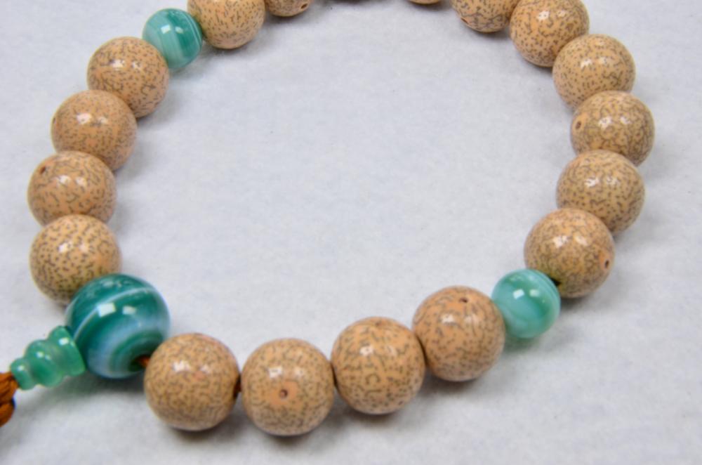 星月菩提樹18玉緑縞瑪瑙仕立て