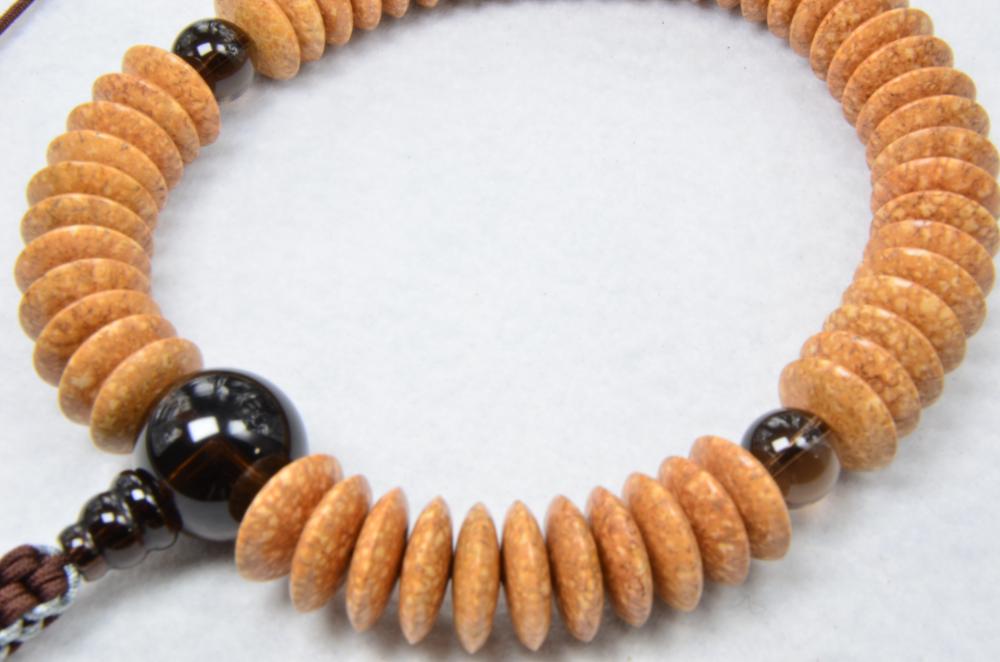 天竺菩提樹無垢54平玉 茶水晶仕立て