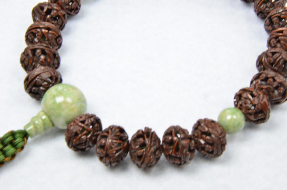 桃の実羅漢彫12×15ミリ 独山玉仕立て