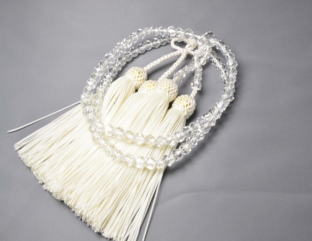 葬儀の際はこちらの白玉の白房のお念珠を持たれます。